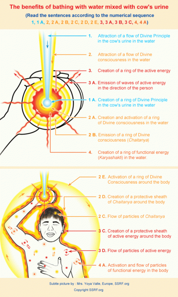 quantity of Gomutra in a bucket of water. Below is a subtle diagram of Gomutra's mechanism